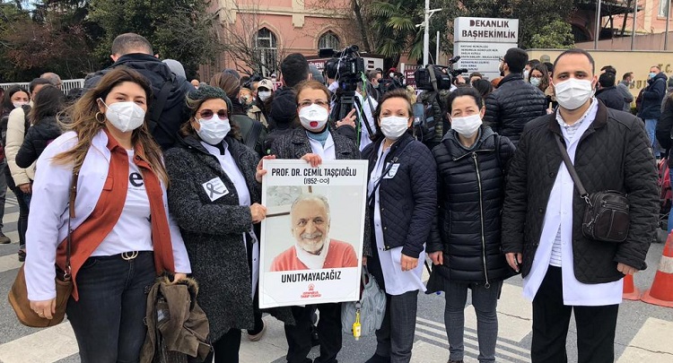 İstanbul Tıp Fakültesi önünde gerçekleştirilen anma etkinliğinde meslektaşlarımız da yer aldı.
