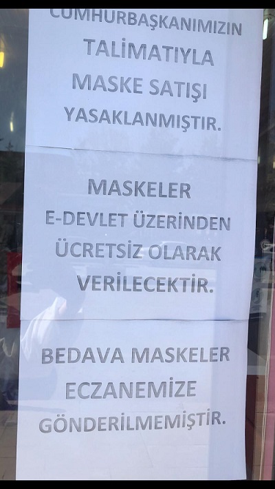 Belirli yerlerde maske takmak zorunlu hale getirildi. Ancak, eczanelerden ücretsiz maske dağıtımı ihtiyacı karşılayamıyor. Mevcut uygulamanın sıkıntıları ile vatandaşlar arasında kalan eczacılar çok zor durumda kaldılar. Diğer taraftan vatandaşlar maskeye ulaşamıyorlar.