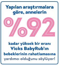 Yapılan bir araştırmaya göre, annelerin %92 kadar yüksek bir oranı Vicks BabyRub’ın bebeklerinin rahatlamasına yardımcı olduğunu söylüyor.