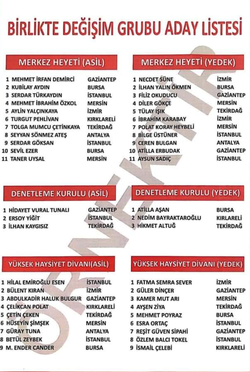 Beklenildiği gibi 2 aday listesi açıklandı.