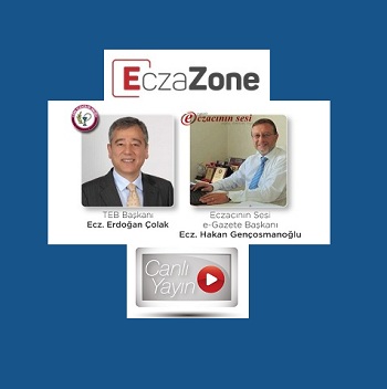 Eczacılara özel ücretsiz danışmanlık videoları sunan EczaZone.com’un ilk canlı yayını EczaZone Sohbetleri; Eczacının Sesi e-Gazete Başkanı Ecz. Hakan Gençosmanoğlu’nunmoderatörlüğünde ve TEB Başkanı Sayın Ecz. Erdoğan Çolak’ın konuşmacı olarak katılımı ile başlıyor.