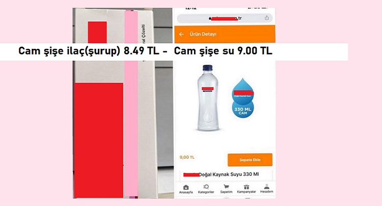 Söz konusu paylaşımda, şurup formunda bir ilacın fiyatının 8.49 TL , bir şişe suyun ise 9 TL olduğu gerçeği vurgulanıyor.