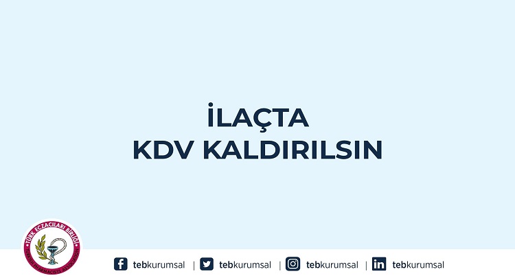 Türk Eczacıları Birliği olarak Sağlık Bakanlığı’nın ruhsatlandırdığı veya ithaline izin verdiği beşeri tıbbi ürün, tıbbi mama, tıbbi cihaz ve malzemelerde katma değer vergisinin (KDV) kaldırılmasına ilişkin ilgili mercilere talepte bulunmuştuk.