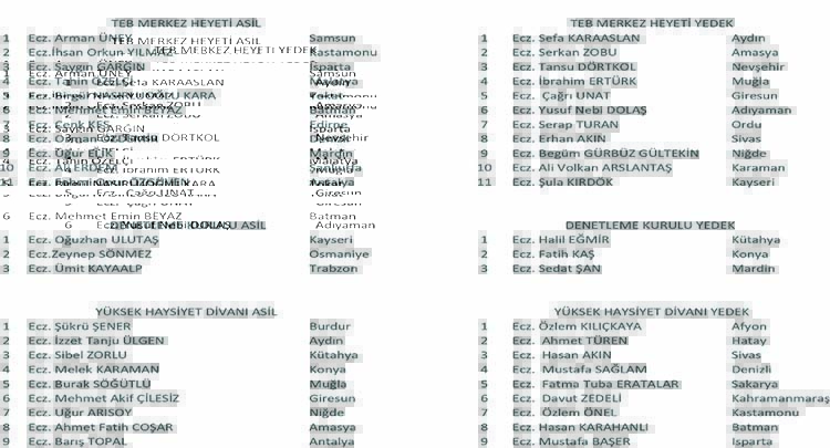 TEB seçimlerine katılan aday listelerini (3 aday listesi- Divana veriliş sıralarına göre) yayımlıyoruz: