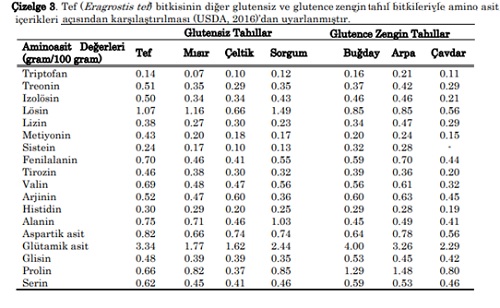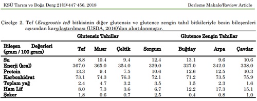 ETKEN MADDELERİ: Tef bitkisini buğday, arpa ve çavdar gibi diğer tahıl ürünleriden ayıran ve öne çıkmasını sağlayan en önemli özelliği gluten içermemesidir.