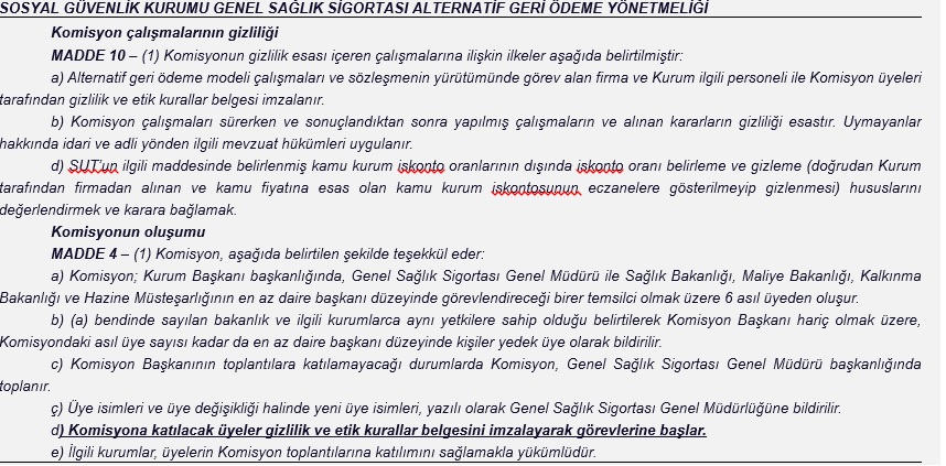 Sakın isminde yer alan “alternatif” kelimesine aldanılmasın… Konu “Alternatif Geri Ödeme” değil, adeta “Gizli Saklı Ödeme”dir. Kurum bu uygulama ile bazı ilaçlar için firmalarla tek tek fiyat görüşmeleri yapmakta, Sağlık Bakanlığınca belirlenip yayınlanan resmi fiyatları dikkate almayarak yetkisini aşmaktadır. Bu uygulama için de Sendika olarak Danıştay’da dava açıp kazandık. Çünkü bu tip devletin finans kurumları şeffaf olmak zorundadır; gizli anlaşmalar yapıp firmalardan yeminli ifadeler alamaz, kamunun bilgisi dışında iş ve işlem yapamazlar.