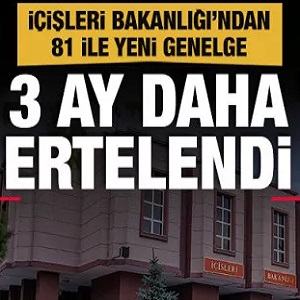 “Koronavirüs salgınında yaşanan artış nedeniyle, derneklerin genel kurulları, sivil toplum kuruluşları, kamu kurumu niteliğindeki meslek kuruluşları ve üst kuruluşları, birlikler ve kooperatifler tarafından düzenlenecek etkinlikler (genel kurul toplantıları dahil) 3 ay süreyle tekrar ertelendi.”