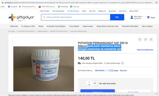 1. Trendyol, Akakçe, Çiçek Sepeti, n11com, Gittigidiyor, Hepsiburada ve benzeri internet sitelerinde majistral ürün olarak nitelendirilen, hekim reçetesi ile hastaya yazılan ve eczacılar tarafından yapılan ilaçların görsellerinin yer aldığı, yine bu sitelerde zehirli ve kimyevi maddelerin satıldığı, bir kısım ürünlerde endikasyon belirtildiği açıkça görülmektedir. Ekte sunacağımız görsellerle de görüleceği üzere söz konusu eylemlerin hukuka ve usule aykırı olduğu sabittir. (EK:1) Zira;