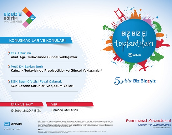 Abbott ve Farmazi Akademi’nin 19 Şubat 2020 Çarşamba günü saat 18:30’da, Ramada Otel, Uşak’ta düzenlediği yemekli eğitim toplantısına davetlisiniz.