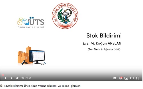 37. Bölge Sivas Eczacı Odası, "ÜTS Stok Bildirimi" hakkında bir video hazırlattı.