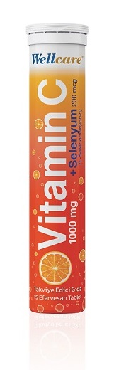 KENDİNİ KORU BAĞIŞIKLIĞINI DESTEKLE sloganı ile lanse edilen Wellcare Vitamin C + Selenyum’un içeriğinde 1000 mg Vitamin C ve 200 mcg selenyum bulunuyor. Portakal ve misket limon aromalı olan ve yapay tatlandırıcı içermeyen Vitamin C + Selenyum efervesan tablet, güzel tadı ve kolay içimiyle çocukların ve yetişkinlerin güvenle kullanacağı benzersiz bir ürün olma özelliğini taşıyor. 200 ml (bir bardak su) ile 11 yaş üzeri çocuklar ve yetişkinler için günde 1 efervesan tablet olarak kullanımı öneriliyor.