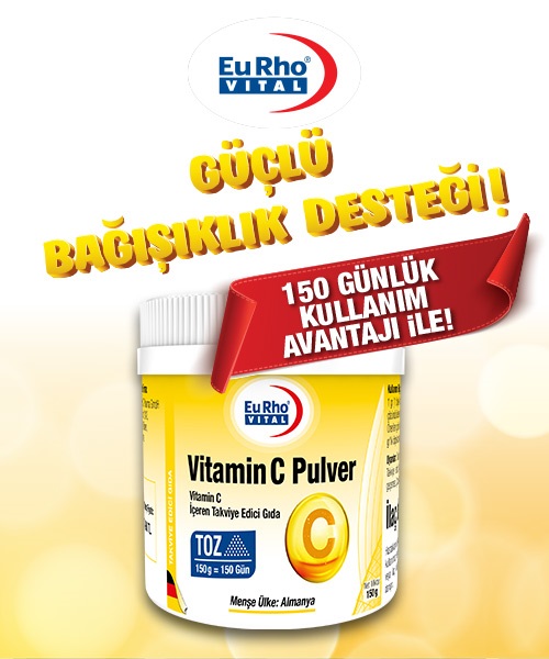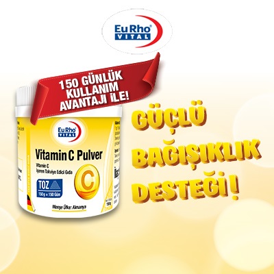 Bağışıklığınız desteklemek, hastalıklara yakalanma riskini azaltmak için EuRho® Vital Vitamin C Pulver’den her gün 1 gram=1000 mg C vitaminini tercih edebilirsiniz.
