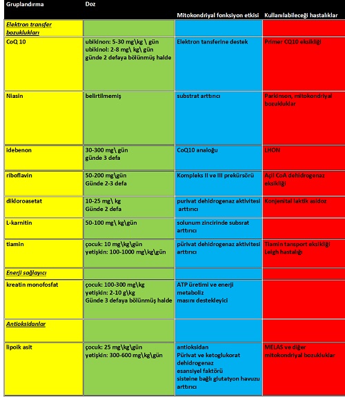 MİTOKONDRİYAL HASTALIKLARDA KULLANILABİLECEK GIDA TAKVİYELERİ