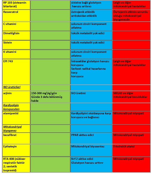· EPI-743 (E vitamini analoğu) özellikle LHON ve Leigh sendromunda yararlı etkileri görülmüştür.
