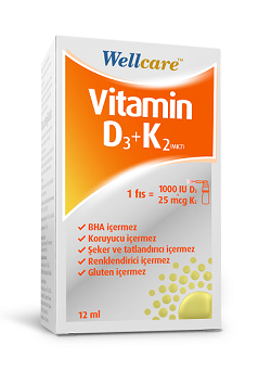 Wellcare Vitamin D3 ailesinin 4 farklı formuna, son olarak Vitamin D3+K2 formu da eklenerek, sağlığını önemseyen tüketicilere Wellcare tarafından takviye vitamin olarak öneriliyor. Wellcare Vitamin D3+K2 sprey formuyla dikkat çekiyor ve tüketiciye rahat bir kullanım sunuyor. Tek fısta 1000IU D vitamini ve 25 mcg K2 vitamini içeren Wellcare Vitamin D3+K2, kemik sağlığını korumak isteyen yetişkinlere ihtiyaç duyulan desteği sağlıyor. Kas- iskelet sisteminin yakın koruması olarak bilinen Wellcare Vitamin D3+K2 Sprey; renklendirici, tatlandırıcı, koruyucu ve katkı maddesi içermiyor.