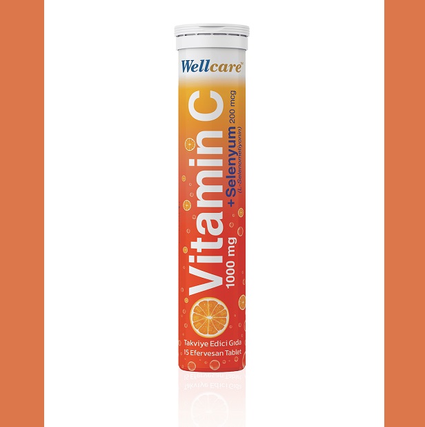 KENDİNİ KORU BAĞIŞIKLIĞINI DESTEKLE sloganı ile lanse edilen Wellcare Vitamin C + Selenyum’un içeriğinde 1000 mg Vitamin C ve 200 mcg selenyum bulunuyor. Portakal ve misket limonu aromalı olan Wellcare Vitamin C + Selenyum, güzel tadı ve kolay içimiyle çocukların ve yetişkinlerin güvenle kullanacağı benzersiz bir ürün olma özelliğini taşıyor. 200 ml (bir bardak su) ile 11 yaş üzeri çocuklar ve yetişkinler için günde 1 efervesan tablet olarak kullanımı öneriliyor.