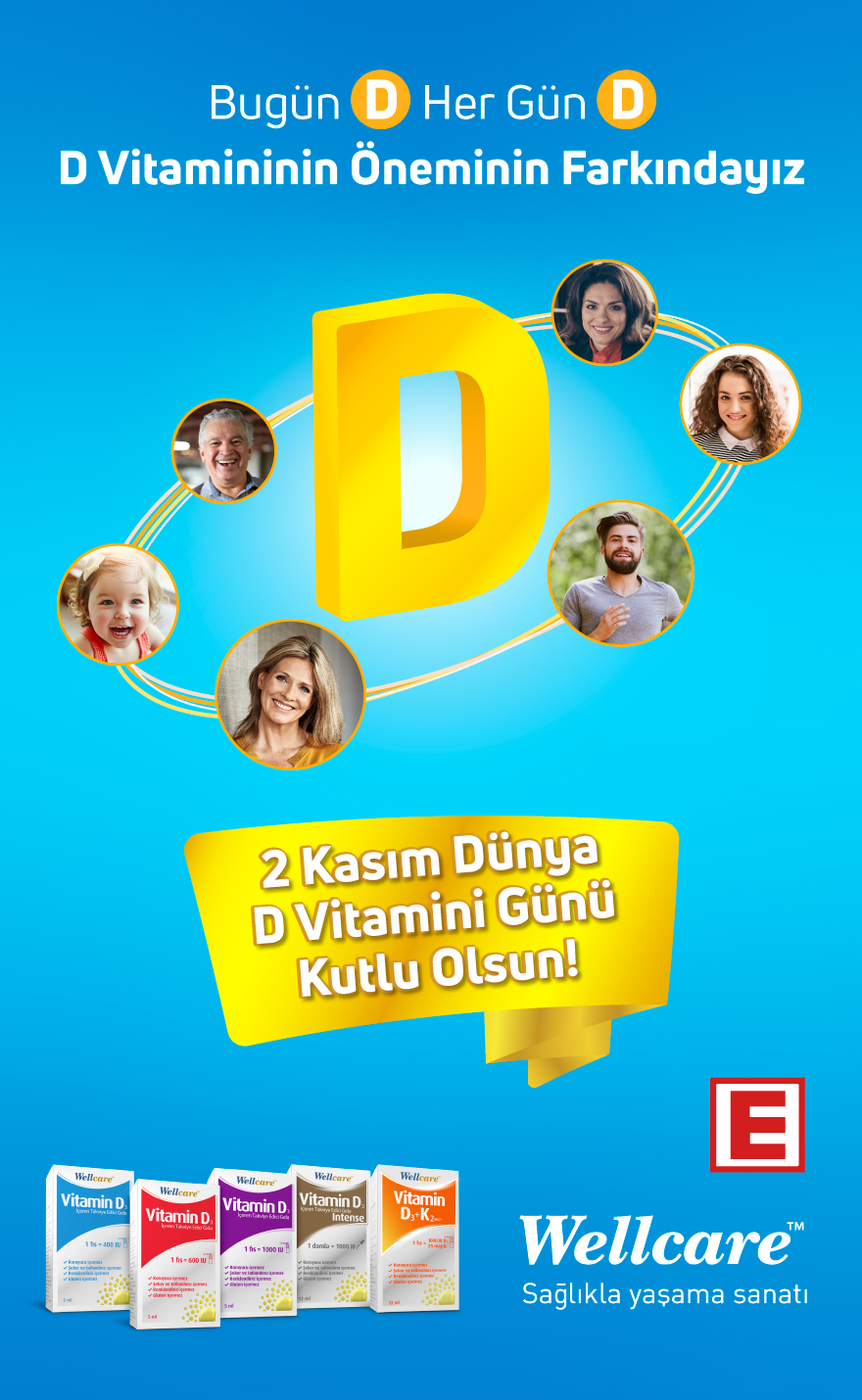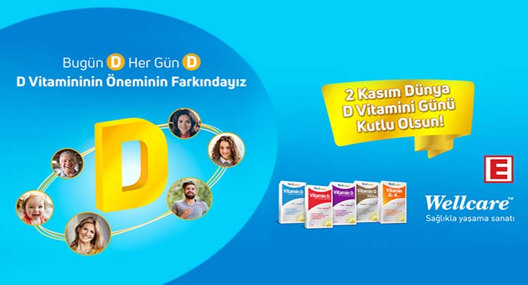 D Vitamini ve D Vitamini eksikliği ile ilgili farkındalık oluşturmak amacıyla 2 Kasım, Dünya D Vitamini Günü olarak kutlanıyor. Tüketici sağlığı alanında yenilikçi ürünler sunan Wellcare, sprey formuyla Türkiye’de bir ilk olan Vitamin D3 ürün ailesi ile bugün ve her gün yanınızda olmaya devam ediyor.