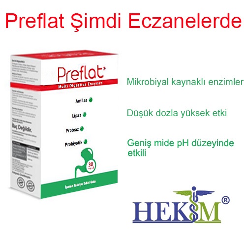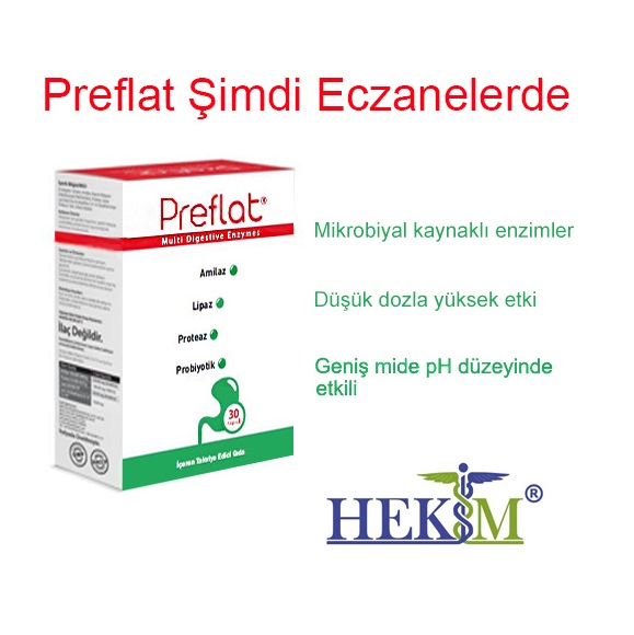 Enzimle birleştirilmiş probiyotik kombinasyonlu preparatlar (Türkiye’nin ilk ve tek enzim ve probiyotik kombinasyonlu ürünü Preflat gibi preparatlar) hem tanı almamış pankreas yetersizliklerinde hem de fonksiyonel yetersizliklerde (geçirilmiş safra kesesi operasyonları, mide ve bağırsak operasyonları, gastrit, laktoz intoleransı vb.) sindirim sisteminin fonksiyon kazanımlarını artırmaya yardımcı olur. Sağlıklı sindirimle birlikte sağlıklı mikrobiyoma katkı sağlar(1).