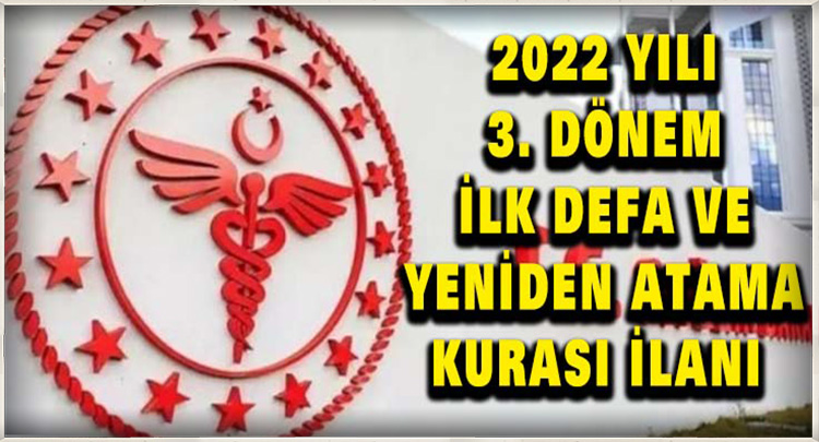 22 Eylül 2022 tarihli ve 31961 sayılı Resmi Gazete’de Sağlık Bakanlığı tarafından, 2022 Yılı 3.Dönem İlk Defa ve Yeniden Atama Kurası İlanı yayımlanmıştır.